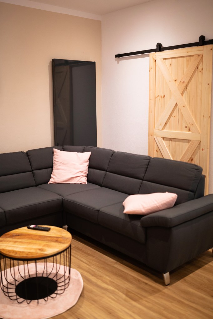 Unsere Familienoase verfügt über insgesamt 90 m², wobei das Zentrum der großzügige Wohn- und Essbereich darstellt. Hier kann die ganze Familie zusammenkommen, gemeinsam kochen oder bei einem gemütlichen Abend auf dem großen Ecksofa entspannen. Der Wohnbereich verfügt dazu über einen großen TV, während die Küche alle notwendigen Geräte wie eine Kaffeemaschine, Backofen, Mikrowelle und andere Küchengeräte aufweist.